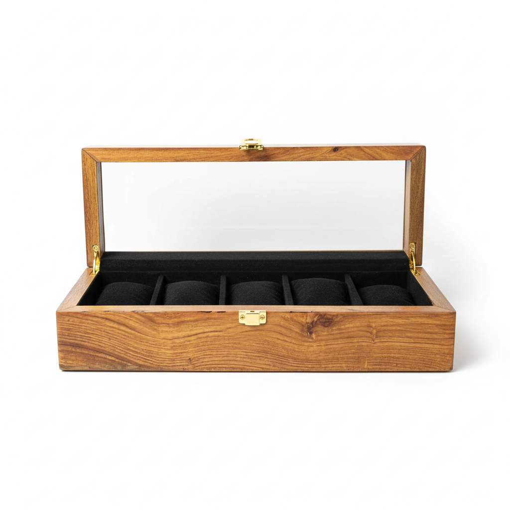 Made from richly textured natural wood, the exterior feels warm to the touch, while the velvet-lined interior protects your watches with a soft, cushioned embrace. The clear top adds a touch of sophistication, letting you enjoy your collection at a glance. Whether you’re a collector, a gift-giver, or someone who values premium wooden decor, this box adds elegance, order, and a sense of heritage to any space.